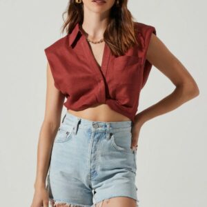 - Deep V-neckline